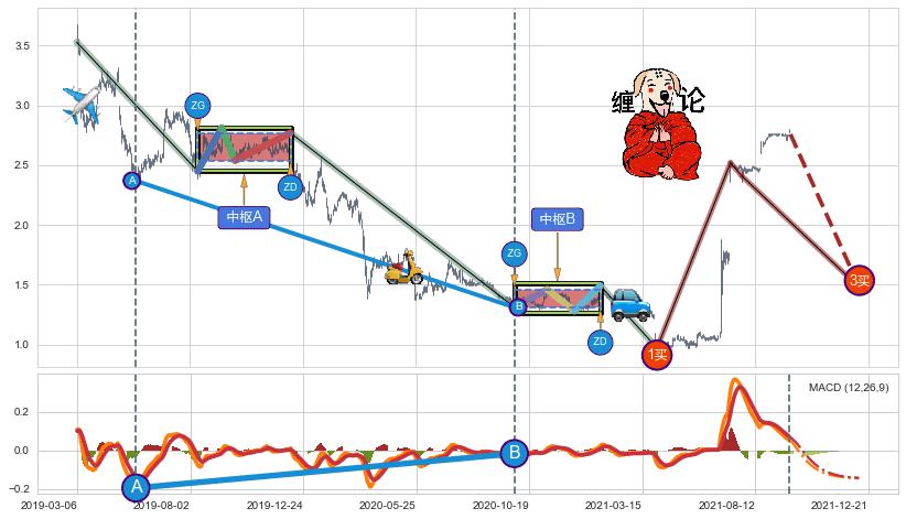 ➣ 【已完成】缠论 起点:2019-03-06,完成第1中枢A,完成第2中枢B,终点:2021-04-01,缠论共631交易日