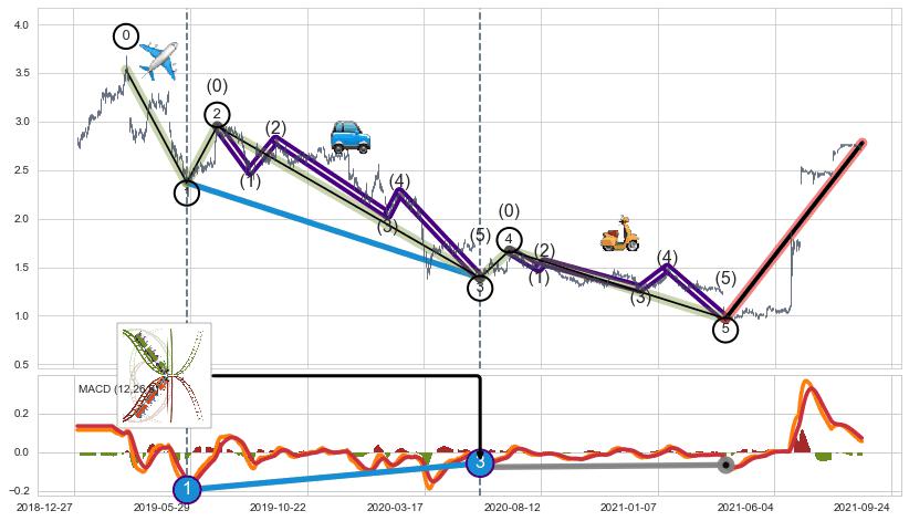 ➣ 第一, 三, 五浪下跌动能逐渐【衰弱变小】,趋势呈现不稳迹象