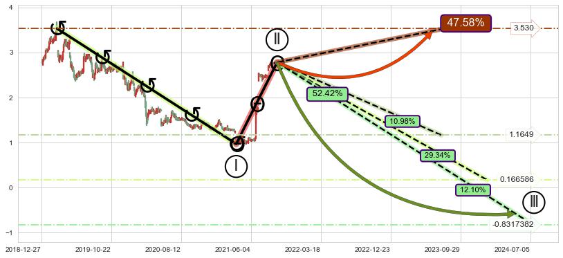 ➣ 大趋势循环浪继续向下概率52.42%