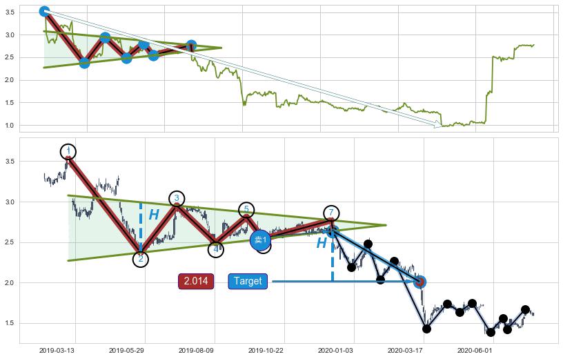 ➣ 【已确认突破】下降【对称】三角形整理 起点:2019-03-06,突破点:2019-12-10,形态共191交易日