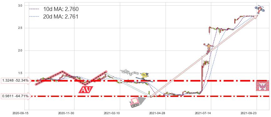 ♞ 10日均线:2.760,20日均线:2.761→ 快线<慢线