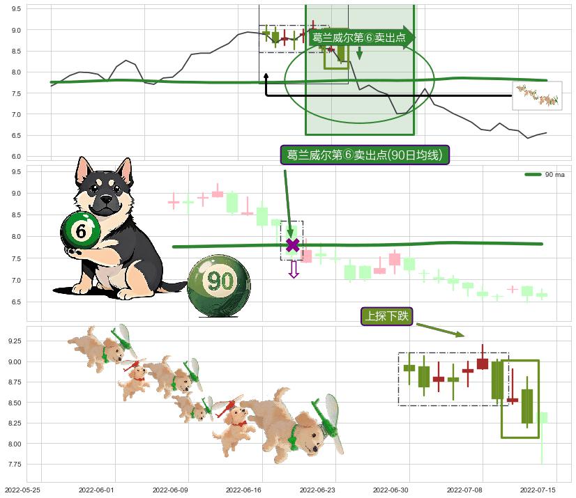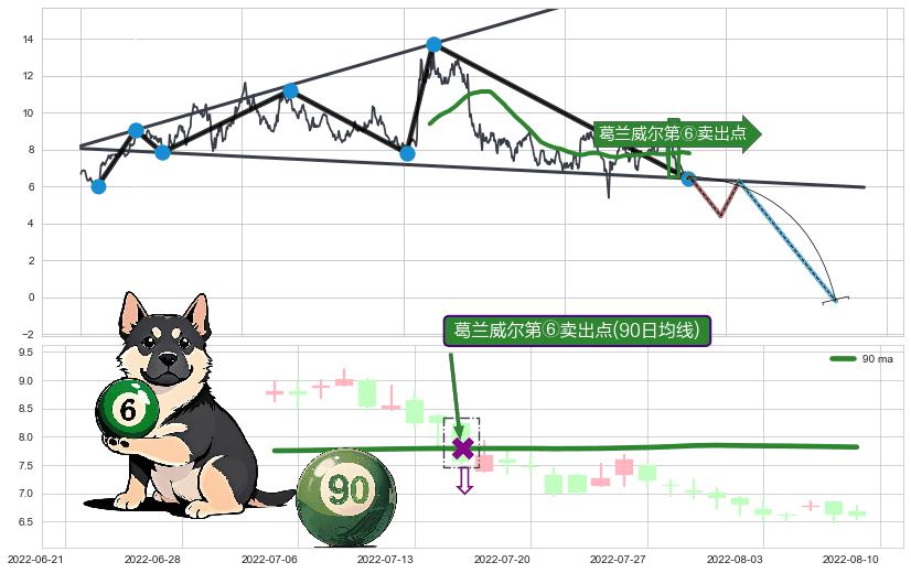 | 5 🅚:下跌身怀六甲 ➕ 🎢:葛兰威尔第⑥卖出点卖出点信号形成后,猜想后续上涨趋势反转下跌趋势(均值回复) ☞ 看空信号 ⇥ 【均线】交织【🅚线】⇥ 综合量化分数: 36 | > |