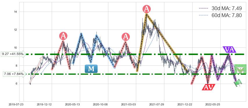 ♞ 30日均线:7.49,60日均线:7.80→ 快线<慢线