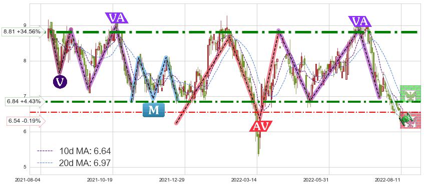 ♘ 阻力价格位6.84,可信任强度81.07%,距离最后交易2022-08-12形成的收盘价格6.55相差 +4.43%