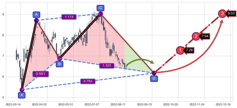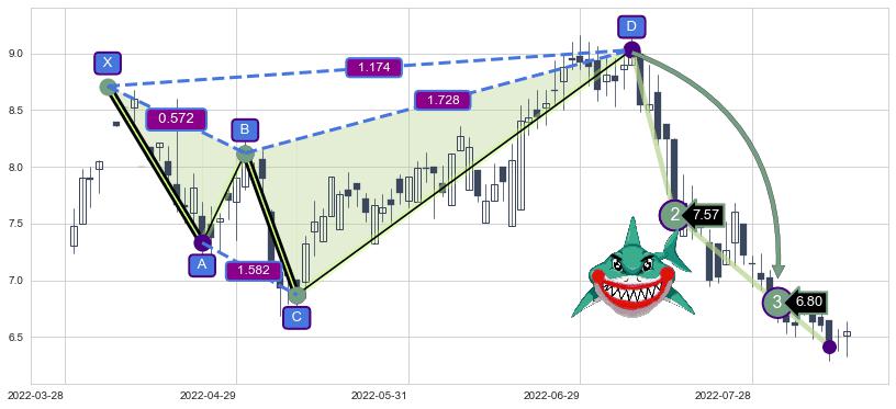 ➣ 已完成【鲨鱼】形态起点X: 2022-04-04, 终点D: 2022-07-08, 共62交易日