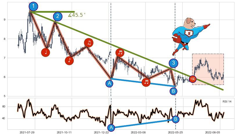 ➢ 最后的下跌趋势2021-07-21至2022-06-28:存在突破迹象,后续小反弹或者反转上涨