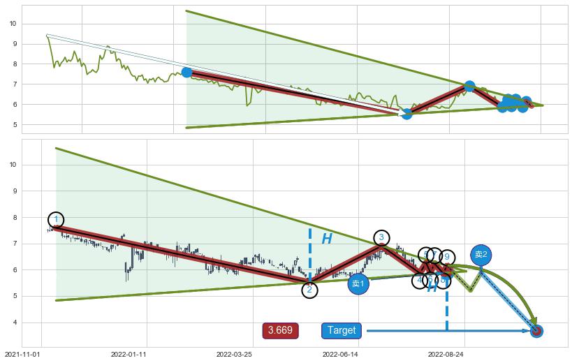 ➣ 【仅预测突破】最后价格:6.15与预测突破价格:5.88→【空间临近】后续最小【整理】第一目标价格→(2022-10-11: 3.669 )