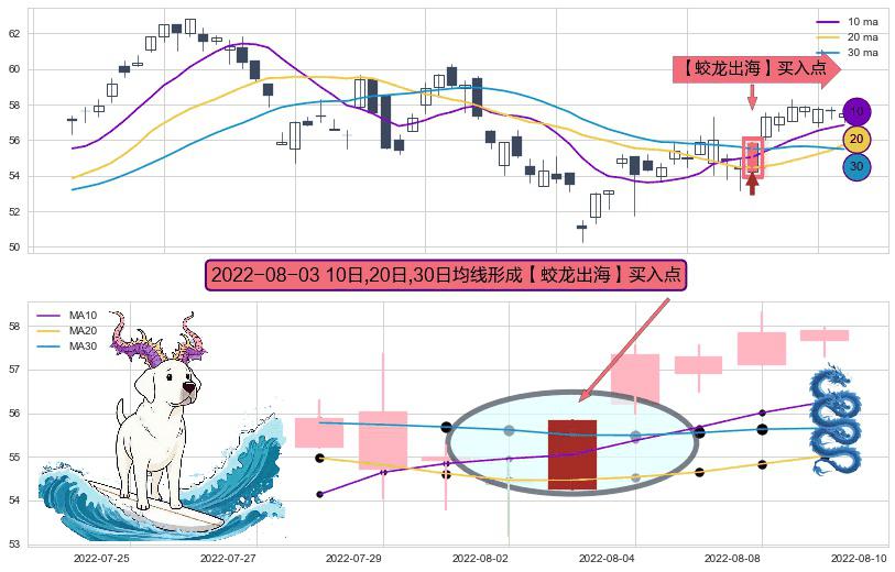⚀ 2022-08-03日显现 10日-20日-30日均线 【蛟龙出海】买入点 看多信号,后市看涨,买入