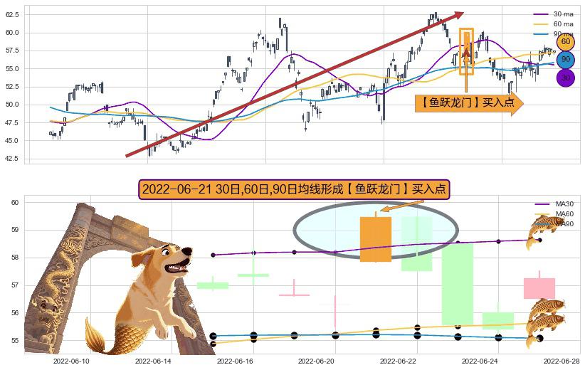 ⚀ 2022-06-21日显现 30日-60日-90日均线 【鱼跃龙门】买入点 看多信号,后市看涨,买入