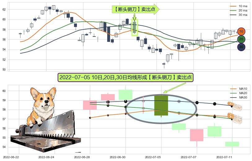 ⚀ 2022-07-05日显现 10日-20日-30日均线 【断头铡刀】卖出点 看空信号,后市看跌,卖出