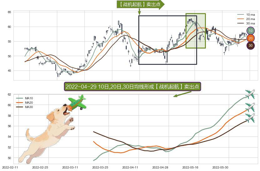 ⚀ 2022-03-18日-2022-06-08日显现 10日-20日-30日均线 【战机起航】卖出点 看空信号,后市看跌,卖出