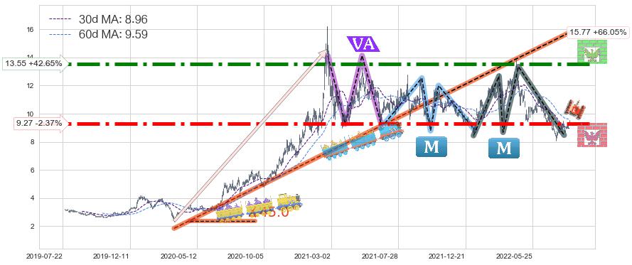 ♘ 阻力价格位13.55,可信任强度96.63%,距离最后交易2022-08-12形成的收盘价格9.50相差 +42.65%