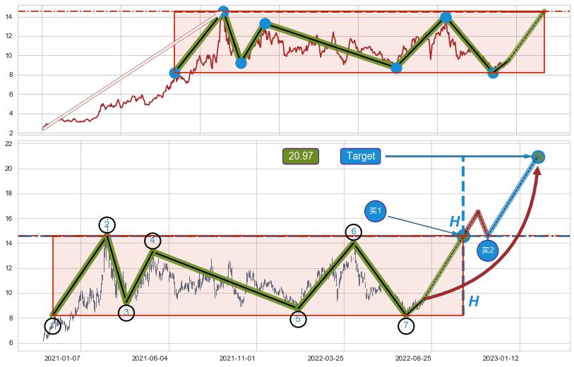 ➣ AI智能【预测买2】: 保守型 买点 →(2022-11-23: 14.58 )预测突破后的【回抽确认】