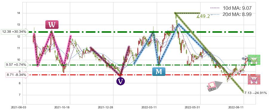 ♘ 阻力价格位9.57,可信任强度65.48%,距离最后交易2022-08-12形成的收盘价格9.50相差 +0.74%