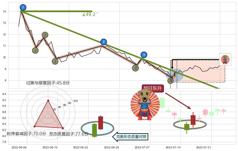 ➣ 2022-04-13-2022-08-11下跌趋势存在反转上涨[机会],其原下跌趋势的阻力位(7.13)已被突破[强支撑信号],原下跌趋势角度: 49.2˚