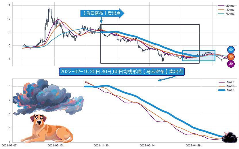 ⚀ 2021-10-25日-2022-06-10日显现 20日-30日-60日均线 【乌云密布】卖出点 看空信号,后市看跌,卖出