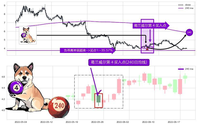 ⚀ 2022-05-25-日显现 葛兰威尔均线 240日均线 第④买入点 下降趋势均值回复的短线反弹信号,后市看涨,买进信号