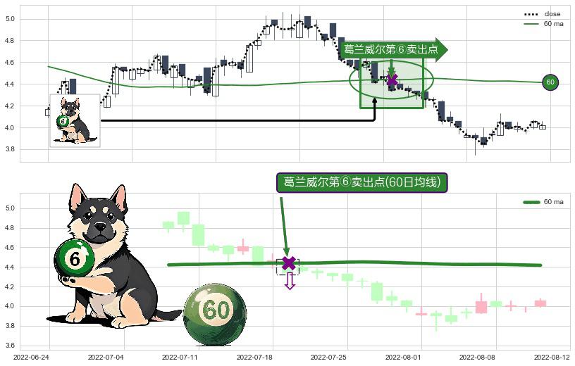 ⚀ 2022-07-19-日显现 葛兰威尔均线 60日均线 第⑥卖出点 走势反转见顶信号,后市看跌,卖出信号