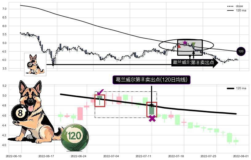⚀ 2022-07-11-日显现 葛兰威尔均线 120日均线 第⑧卖出点 下降趋势的中继信号,后市看跌,卖出信号