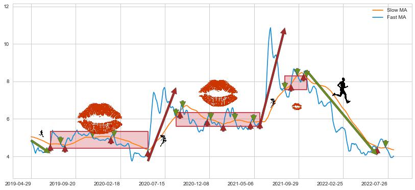 2021-10-28至2022-06-21 慢线与快线呈空头排列, 慢线与快线接触少,无缠绕