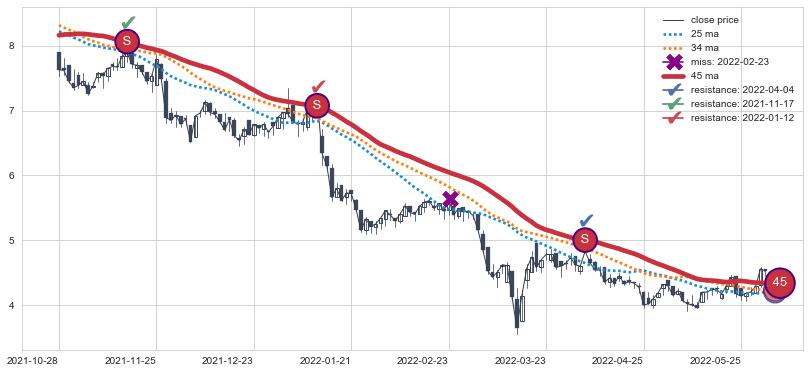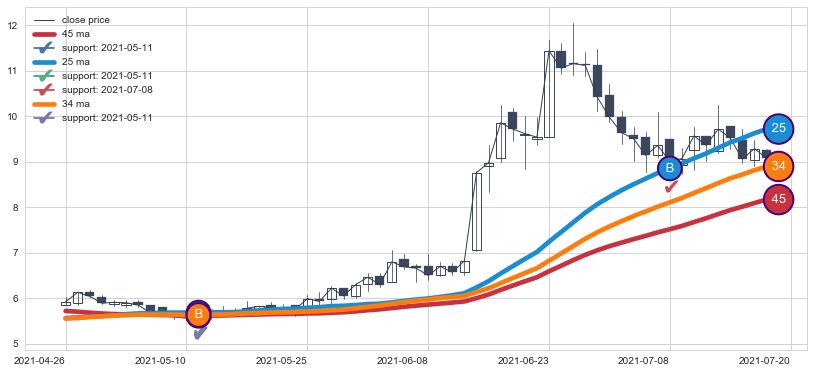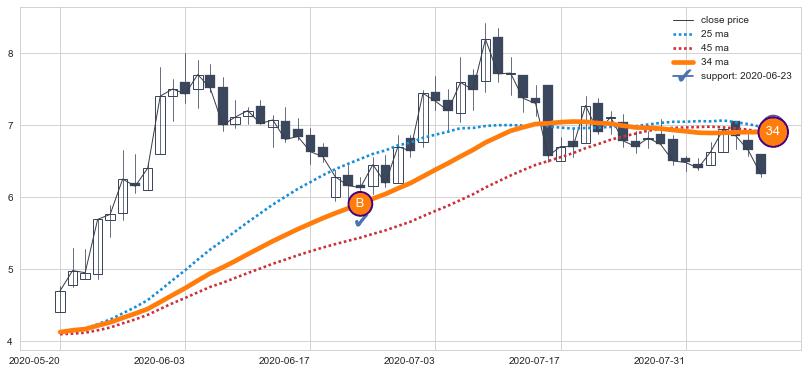 ⚃ 在破位点附近ma走势已有下垂迹象,稍后的走势中ma下降趋势明显,信号【可信度高】