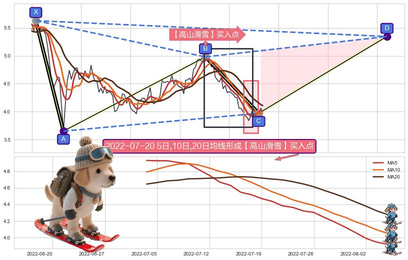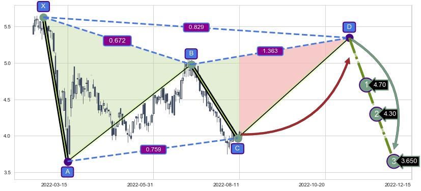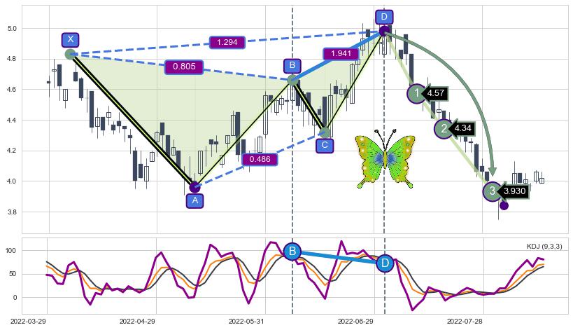 ➣ 已完成【蝴蝶】形态起点X: 2022-04-04, 终点D: 2022-07-04, 共59交易日