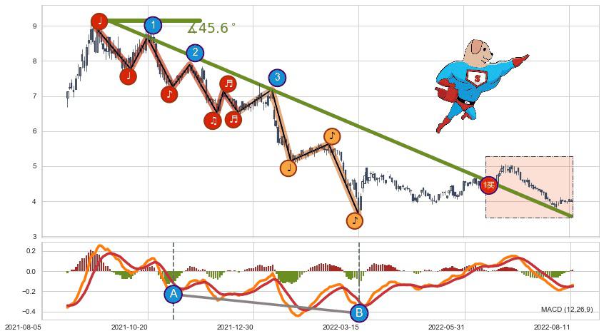 ➢ 2022-07-12到达第❶价格目标位置4.57