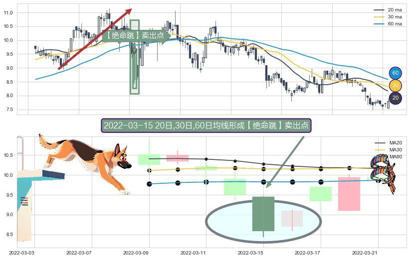 ⚀ 2022-03-15日显现 20日-30日-60日均线 【绝命跳】卖出点 看空信号,后市看跌,卖出