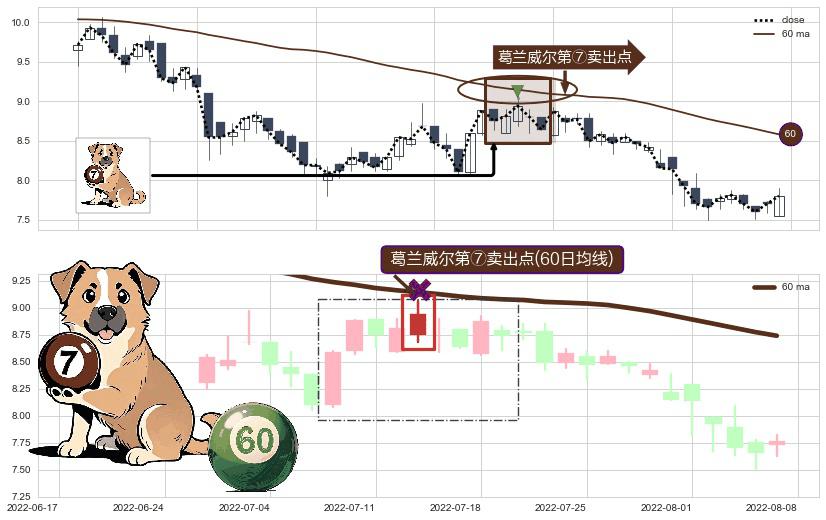 ⚀ 2022-07-13-日显现 葛兰威尔均线 60日均线 第⑦卖出点 下降趋势的中继信号,后市看跌,卖出信号