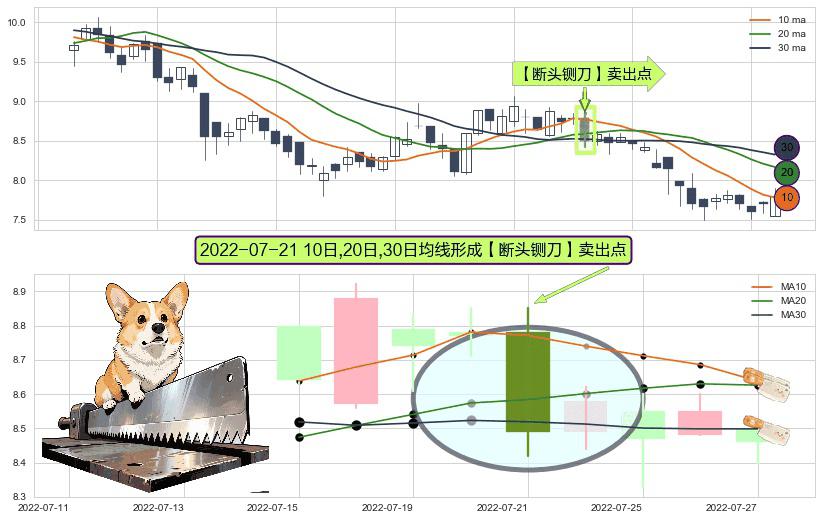 ⚀ 2022-07-21日显现 10日-20日-30日均线 【断头铡刀】卖出点 看空信号,后市看跌,卖出