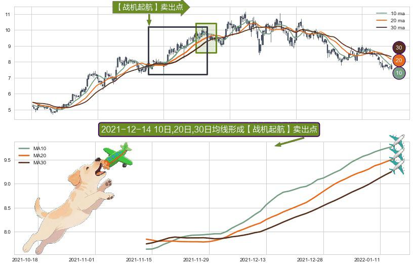 ⚀ 2021-11-12日-2022-01-13日显现 10日-20日-30日均线 【战机起航】卖出点 看空信号,后市看跌,卖出