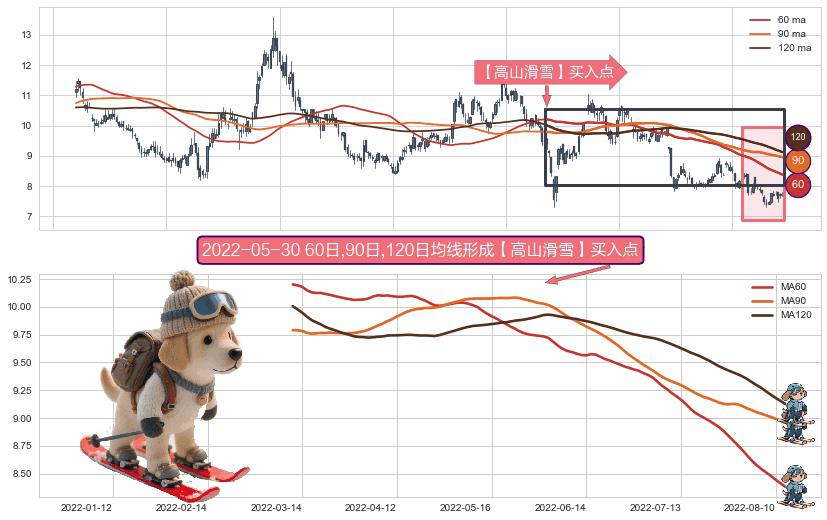 形态多维评估: ⚀ 2022-03-10日-2022-08-12日显现 60日-90日-120日均线 【高山滑雪】买入点 看多信号,后市看涨,买入