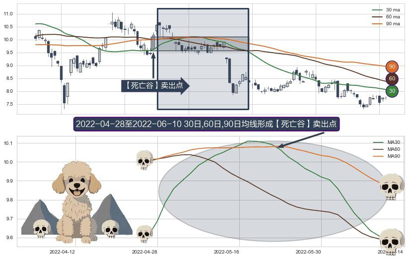 形态多维评估: ⚀ 2022-04-29-日至2022-06-10-日显现 30日-60日-90日均线 【死亡谷】卖出点 看空信号,后市看跌,卖出