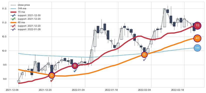 上涨趋势2021-12-06-2022-02-23,均线40, 15确认关键支撑3处