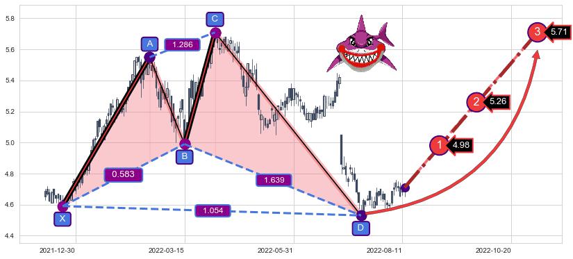➣ 已完成【鲨鱼】形态起点X: 2021-12-21, 终点D: 2022-07-15, 共138交易日