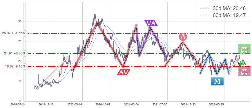 ♘ 阻力价格位26.97,可信任强度62.44%,距离最后交易2022-08-12形成的收盘价格20.50相差 +31.55%