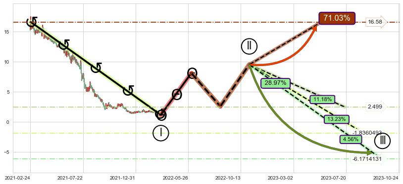 ➣ 循环浪继续向下【平均值】位置(2023-09-05, -1.8360493),匹配聚类样本比例45.66%, 可能性概率13.23%