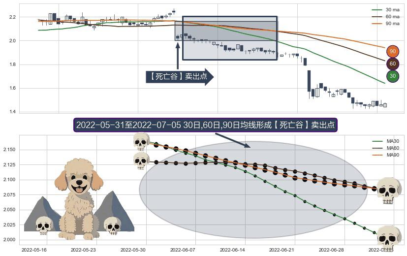 ⚀ 2022-06-01-日至2022-07-05-日显现 30日-60日-90日均线 【死亡谷】卖出点 看空信号,后市看跌,卖出