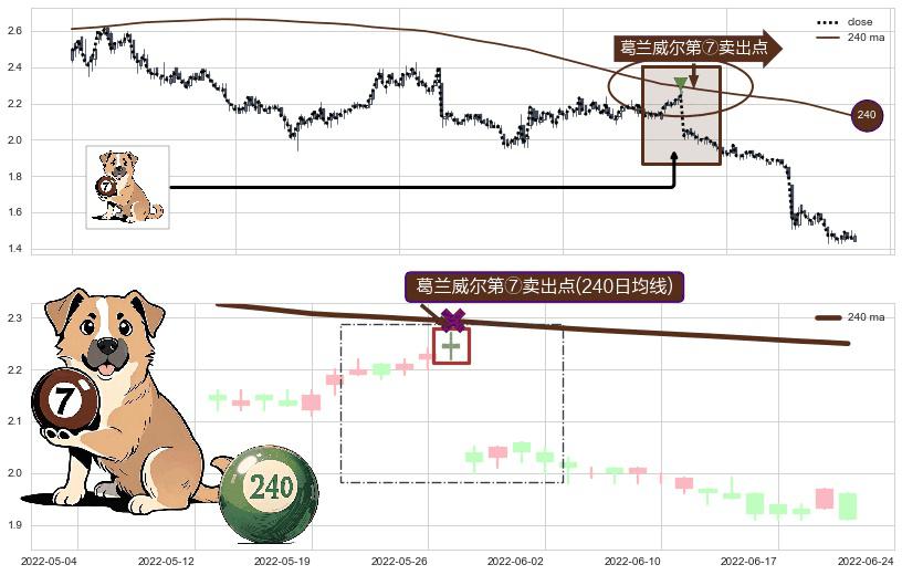 ⚀ 2022-05-27-日显现 葛兰威尔均线 240日均线 第⑦卖出点 下降趋势的中继信号,后市看跌,卖出信号