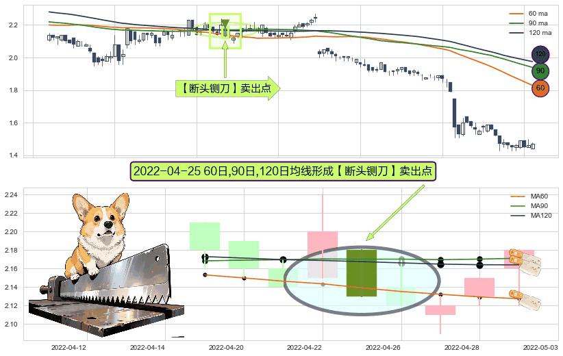 ⚀ 2022-04-25日显现 60日-90日-120日均线 【断头铡刀】卖出点 看空信号,后市看跌,卖出