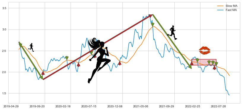 2021-05-31至2022-01-06 慢线与快线呈空头排列, 慢线与快线接触少,无缠绕