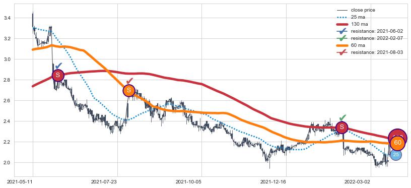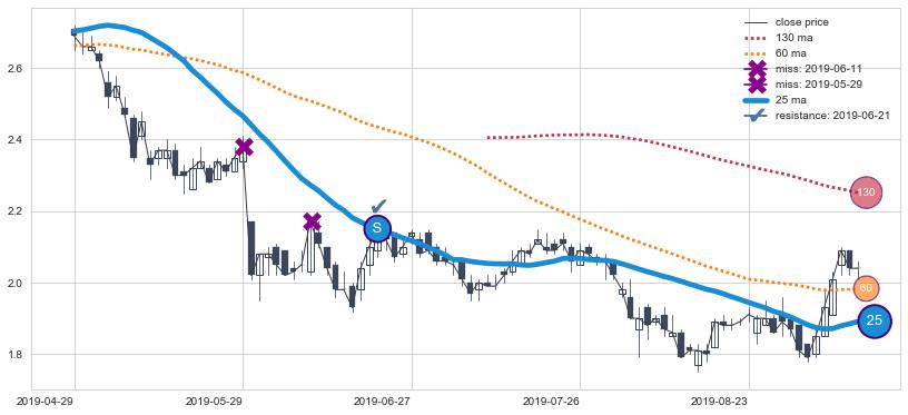 ⚁ MA20和MA30走势平行,且始终保持在短距离内,MA60始终在短中期均线上方,与短中期均线保持一定的距离,微微下行