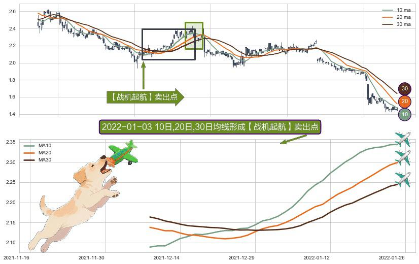 ⚀ 2021-12-08日-2022-01-25日显现 10日-20日-30日均线 【战机起航】卖出点 看空信号,后市看跌,卖出