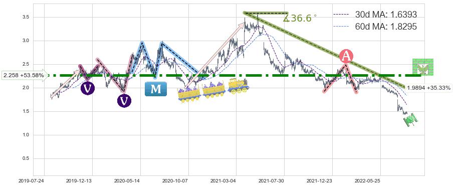♘ 阻力价格位2.258,可信任强度91.68%,距离最后交易2022-08-12形成的收盘价格1.4700相差 +53.58%