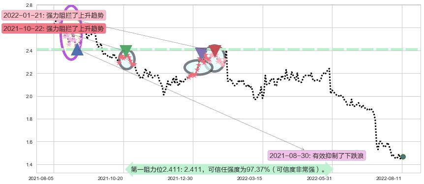 2022-01-21: 第一阻力位2.411强力阻拦了上升趋势,成功阻止了价格的继续上涨。