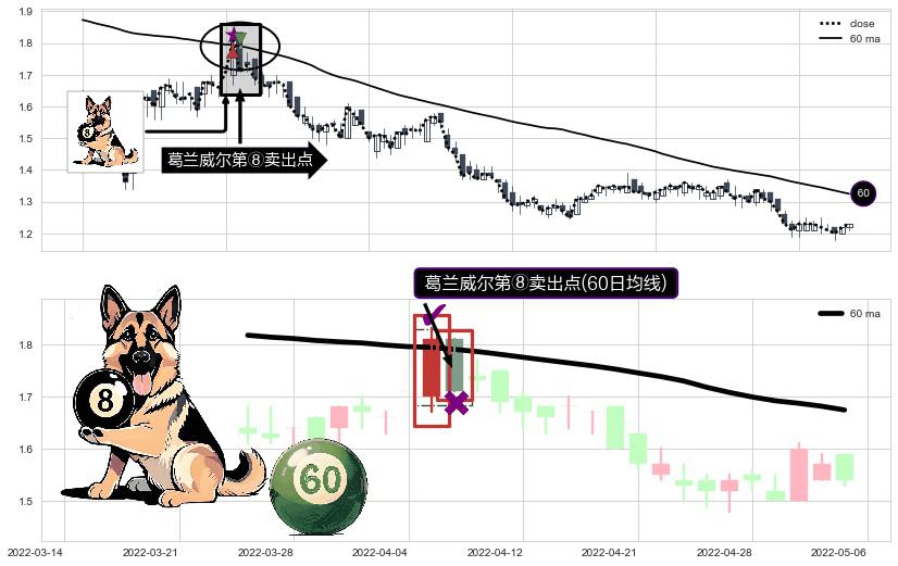 形态多维评估: ⚀ 2022-04-07-日显现 葛兰威尔均线 60日均线 第⑧卖出点 下降趋势的中继信号,后市看跌,卖出信号