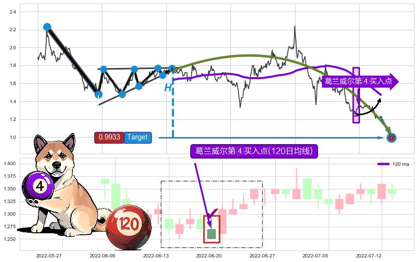 | 4 🅚:低档五阳线 ➕ 🎢:葛兰威尔第④买入点买入点信号形成后,猜想后续走势持续反弹上升(均值回复) ☞ 看多信号 ⇥ 【均线】交织【🅚线】⇥ 综合量化分数: 52 | > |