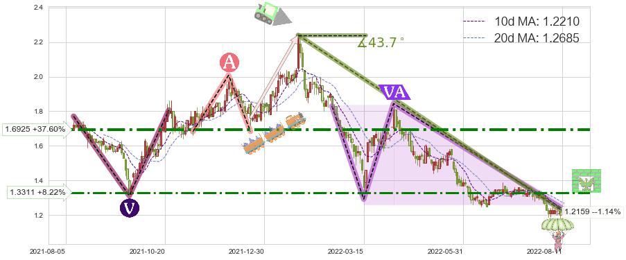 ♘ 阻力价格位1.6925,可信任强度83.74%,距离最后交易2022-08-12形成的收盘价格1.2300相差 +37.60%