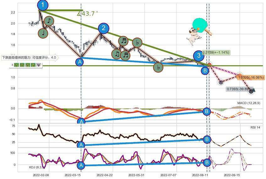 ➣ 预测:2022-09-15,【试探阻力】稳定目前下跌趋势的前提下,预测价格:1.0325