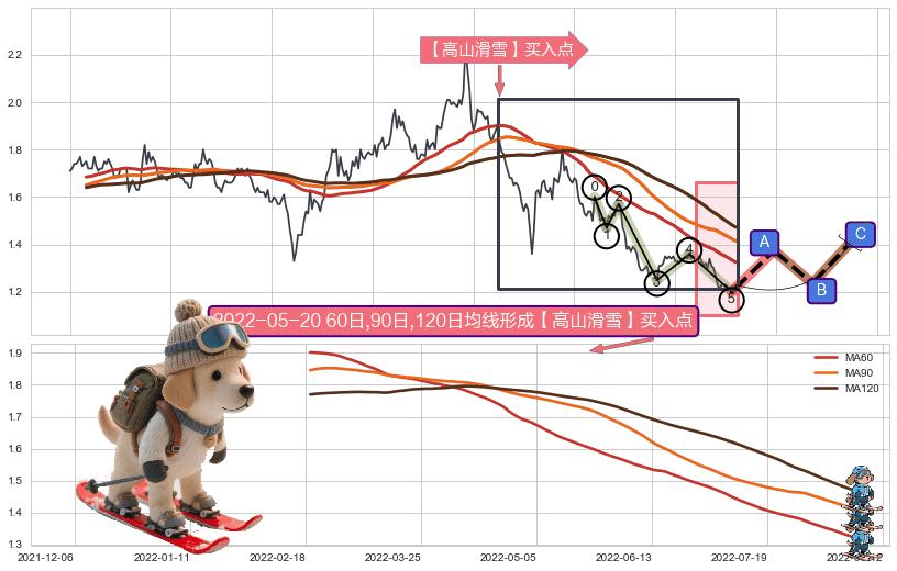 | 2 🅚:【高山滑雪】买入点 ➕ 📈:趋势线下跌趋势向上小反弹持续蓄力,猜想阻力位击穿:上涨拉升(大周期均值回复) ☞ 看多信号 ⇥ 【均线】交织【图形】⇥ 综合量化分数: 60 | > |